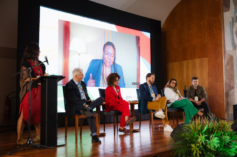 Jane Diel, representante da Organização de Estados Ibero-americanos (OEI), também marcou presença ressaltando a realização no Palácio Capanema. “Estar aqui nesse lugar que representa uma inovação, uma resistência e força para a nossa cultura é muito importante para todos nós. Na primeira edição, que foi em Salvador, o Brasil mostrou ao mundo que não há debate climático complexo sem a voz da cultura”.