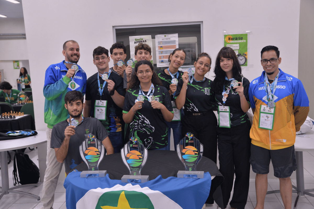 O grande destaque do IFMT veio no xadrez, modalidade em que a instituição conquistou duas medalhas de prata — uma no feminino e outra no masculino por equipes —, reafirmando a tradição e o crescimento da equipe nos últimos anos.