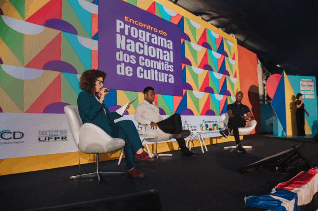 A mesa temática Cultura e Desenvolvimento Social abordou o assunto a partir do Programa Nacional dos Comitês de Cultura (PNCC). Na atividade, Agentes Territoriais de Cultura (ATCs) de diferentes regiões do país compartilharam suas experiências. O painel foi mediado pelo coordenador do Escritório do Ministério da Cultura no Tocantins, Cícero Belém. “O PNCC veio para a gente resgatar a nossa cultura de base, as nossas tradições, que há muito tempo vinham se perdendo. Graças a essa política estamos trazendo todas aquelas pessoas que não eram vistas pelas políticas públicas. É um trabalho que o estado não conseguiu fazer, que é chegar na ponta, para quem precisa, a fim de criarmos uma teia e fortalecermos desde a comunidade até a área urbana”, destacou o ATC Danilo Benaion, do Amapá.