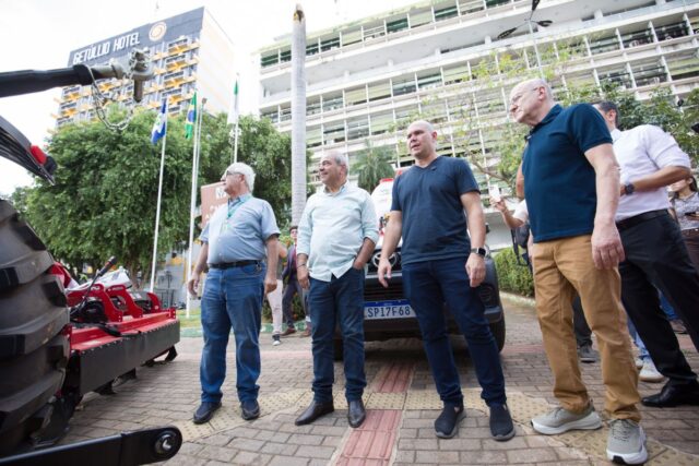 Entre os equipamentos entregues estão dois caminhões truck caçamba basculante de 12 m³ (com previsão de entrega em outubro), dois tratores cabinados de 110 cv, uma pá-carregadeira, uma caminhonete Hilux 4×4, além de enxadas rotativas, pulverizadores, roçadeiras, perfuradores de solo, subsoladores e uma grade aradora.